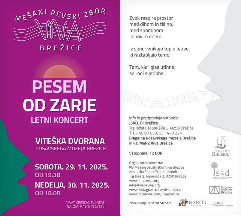 🎶 Vljudno vabljeni na letni koncert MePZ Viva Brežice danes, 𝟐𝟗. 𝐧𝐨𝐯𝐞𝐦𝐛𝐫𝐚 𝐨𝐛 𝟏𝟗.𝟑𝟎 ali v nedeljo, 𝟑𝟎. 𝐧𝐨𝐯𝐞𝐦𝐛𝐫𝐚 𝐨𝐛 𝟏𝟖.𝟎𝟎 🎶