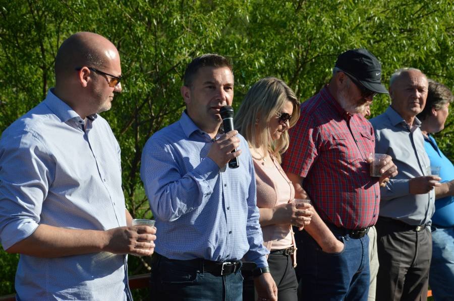 Najprej je navzoče nagovoril župan Občine Samobor Robert Šplajt, ki je poudaril, da jih Sotla nikoli ni razdvajala, ampak združevala. »Malo nas je sicer razdvajala politika, a prizadevali si bomo, da se to ne bo več zgodilo. Slovenija in Hrvaška sta bili vedno eno. Premajhni smo, da bi se ločevali. Moramo biti skupnost, da bomo lahko uspešno nadaljevali,« je dejal in dodal, da bodo kmalu z meje odstranili še ograjo, ki je že nekaj let postavljena zaradi navala migrantov. Naslednji je imel nagovor bistriški župan Franjo Debelak, ki je pohvalil sodelovanje med občinama in prebivalci ob meji ter omenil, da pripravljajo nekaj skupnih projektov. V nadaljevanju so udeležence srečanja nagovorili še županja Občine Zagorska Sela Ksenija Krivec Jurak, župan Občine Podčetrtek Peter Misja in župan Občine Hum na Sutli Zvonko Jutriša. Med zbranimi so bili tudi še podžupan Občine Bistrica ob Sotli Dušan Berkovič, predsednik občinskega sveta Kumrovca Tomislav Škvorc, predsednica Turistične organizacije Kumrovec, Desinić in Zagorska sela Ramona Mačefat Muranić ter v. d. direktorice Kozjanskega parka mag. Valerija Slemenšek. Krajši program je povezovala Danijela Lončar.