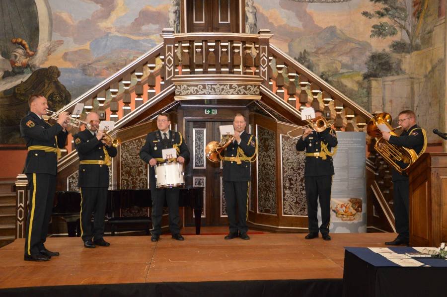 Svečanost, ki jo je povezovala Jožica Stajić, so popestrili praporščaki, člani Trobilnega kvinteta Orkestra SV, ki ga sestavljajo Rudolf Strnad, Boštjan Bone, Dejan Žnideršič, Dominik Pavlenič in Slavko Čot, z bobnarjem ter učenke OŠ Brežice Iva Lazić, Lana Piškur, Sofija Katić, Eva Rus in Gaia Cekuta pod mentorstvom Irene Burja in Katje Lipičnik.