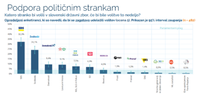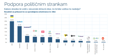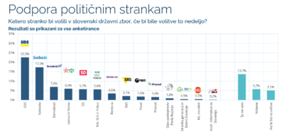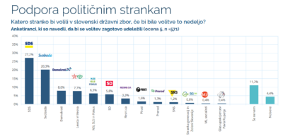 Če bi bile parlamentarne volitve to nedeljo, bi slavila največja opozicijska stranka SDS. Zadnja anketa, ki jo je med 6. in 10. marcem izvedla agencija Parsifal, kaže, da SDS še naprej ohranja precejšnje vodstvo pred vladajočo stranko Gibanje Svoboda, ki jo te dni bremenijo razkritja šokantnih posnetkov pogovorov, v katerih glavno akterko predstavlja nekdanja generalna sekretarka stranke.