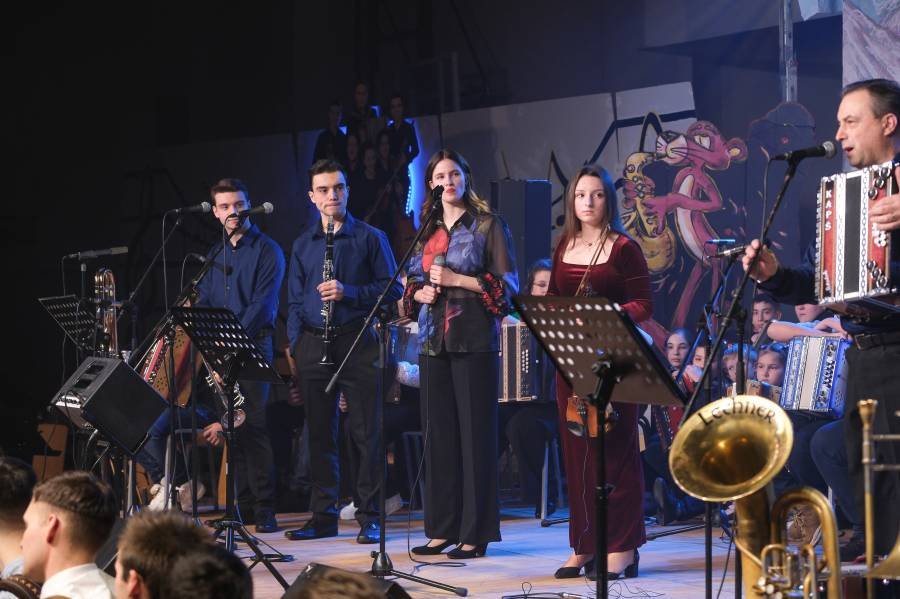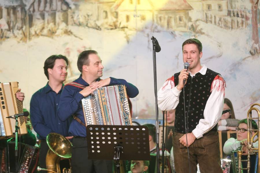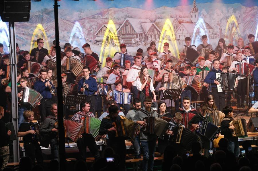 Senovska folklorna skupina, ki je nastopila najprej, je z ramplanjem, starim običajem ob godu ali okroglem rojstnem dnevu, na oder priklicala glavnega organizatorja koncerta s sinovi Tonijem, Jako, Maticem in Miho ter hčerko Evo. Nato se jim pridružilo še več kot 50 mladih harmonikarjev in skupaj so zaigrali tudi pesem Moja Koprivnica, ‘himno’ rojstnega kraja Tonija Sotoška. Pri tem valčku se je Sotoškovim na odru pridružilo tudi dekle mlajšega Tonija, Eva Kokot. Kot solist na harmoniki je v nadaljevanju zaigral Nik Baškovč, aktualni zmagovalec Zlate harmonike Ljubečne, na oder pa so eden za drugim prišli še člani družine Avsenik, pri čemer je Sašo tokrat zaigral na orglice oz. ustno harmoniko. Ob tem je pohvalil številčno krško občinstvo, ki je napolnilo dvorano, in bogato okrašen oder, ki je bil na trenutke skoraj premajhen za vse nastopajoče. Nastopila sta tudi ritem kitarist Franci Mlakar in harmonikar Nino Jamnik.