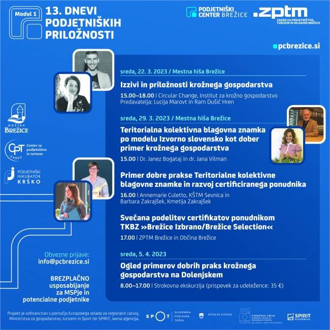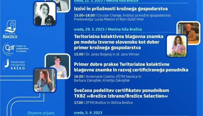 Brezplačna usposabljanja s področja krožnega gospodarstva in kolektivne blagovne znamke, bodo potekala ob sredah (prvo usposabljanje že 22.3.2023), usposabljanju pa bo sledilo tudi neformalno druženje in mreženje udeležencev.