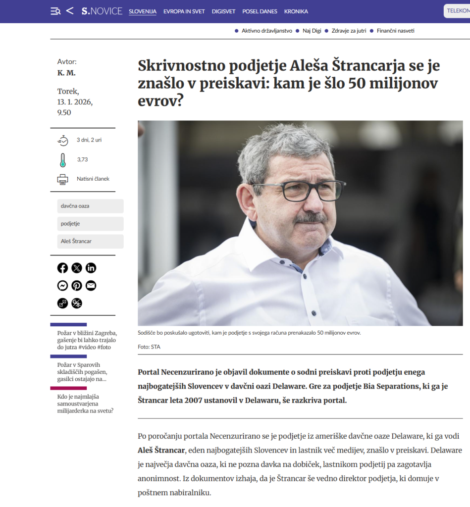 Kakšno »večdesetmilijonsko oškodovanje« ima mag. Wagner v mislih, ko ugiba o poslovanju BIA Separations Inc., ne moreva komentirati, saj gre pri trditvah o oškodovanju dobesedno za zlonamerne špekulacije. Seveda dopuščava tudi možnost, da mag. Wagner dejansko tako slabo pozna področje delovanja BIA Separations, da res misli, da je denar »izginil« in dela tako zmotne zaključke, kot jih navajate v vašem članku. Vsekakor pa ne drži, da naj bi dr. Štrancar »skril« kakršenkoli EUR pred upniki ali kom drugim. Nasprotno. Javno dostopni podatki kažejo, da smo vse upnike slovenske družbe v prisilni poravnavi v celoti poplačali v skladu s prisilno poravnavo. Enak načrt smo imeli tudi za poplačilo avstrijskih upnikov, vendar so nam to mag. Wagner in njegovi podporniki žal preprečili. Če bi bilo po njihovo, bi tudi slovenska družba končala v stečaju, njeni upniki pa bi ostali praznih rok. Na srečo se to ni zgodilo, kar nam je omogočilo, da smo spisali zgodbo o uspehu, na katero je Slovenija še danes lahko ponosna saj BIA Separations d.o.o. na področju biotehnologije v svetu uživa velik ugled. Žal nam je, da to pri nekaterih zbuja več zavisti kot ponosa.”