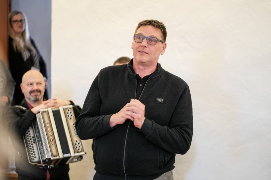 Ob kulturnem programu, ki sta ga izvedla Uroš Brezovšek in tenorist Marko Železnik ob instrumentalni spremljavi Romana Drstvenška, je Marjetič predstavila tudi Boštjana Colariča, ki sicer fotografije, tokrat na platnu, razstavlja drugič v prostorih brestaniškega gradu. Na gradu je namreč na ogled postavil ciklus koncertnih fotografij pod naslovom Devetdeseta že pred dobrima dvema desetletjema (2003), zatem pa samostojne fotografske razstave pripravil še v Valvasorjevi knjižnici Krško (Košnja v Ravnem logu, 2014) in v krški Dvorani v parku (Zmešnjava, 2023), skozi tokratno četrto samostojno razstavo Brestanica pa nudi obiskovalcem panoramski vpogled z več zornih kotov na naselbino v brestaniški kotlini, na/v izstopajoče objekte kulturnega/