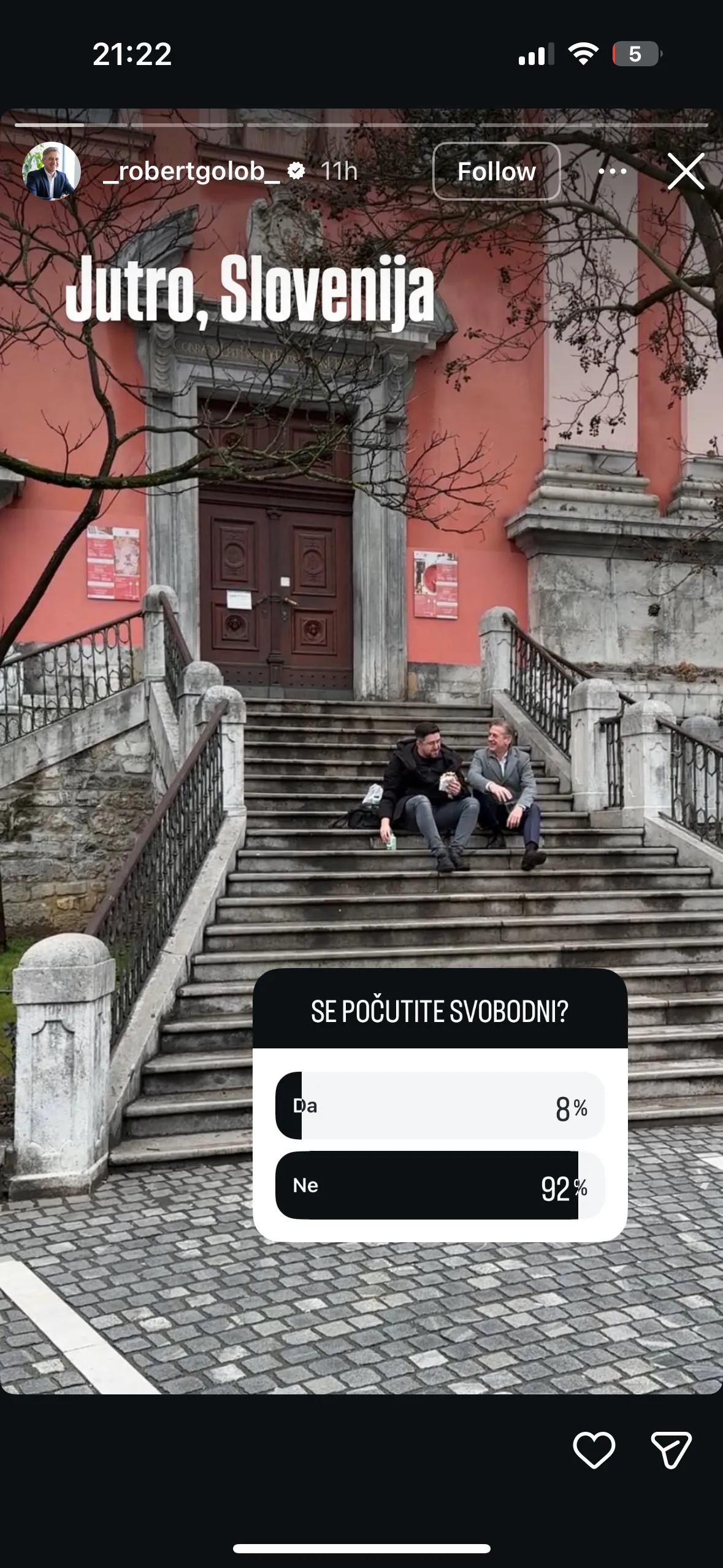 Na njem je tudi vprašanje, ali se ljudje počutijo svobodne. Kar 92 odstotkov uporabnikov je nasprotnega mnenja! Dragi volivci, naj nam ne zdrsne še enkrat!