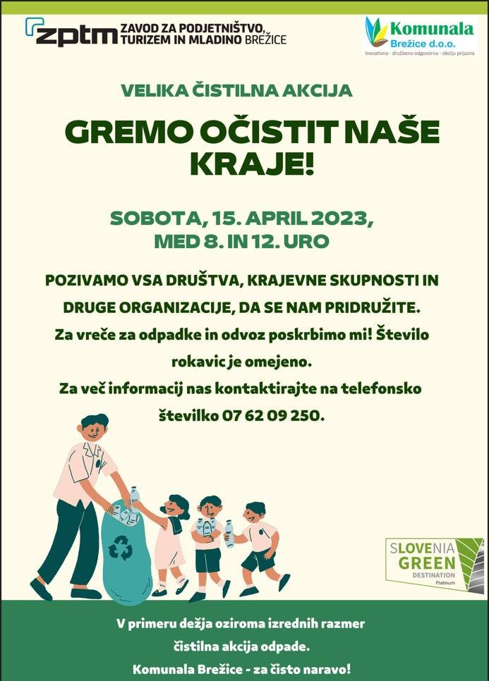 Čistilna akcija poteka na pobudo Komunale Brežice in Zptm Brežice, ki si aktivno prizadevamo za osveščanje o čistem okolju in skrbi zanj.