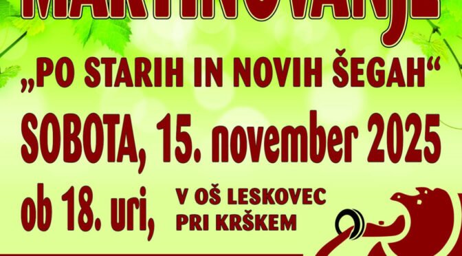 Kulturno društvo Leskovec pri Krškem vabi vse ljubitelje dobre kapljice, zabave in tradicije na letošnje Martinovanje, ki bo potekalo pod geslom »Po starih in novih šegah«.