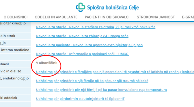 Staršem otrok po določenih zdravstvenih posegih ali ob zdravstvenih težavah na spletni strani Splošne bolnišnice Celje, so zapisana kar v albanskem jeziku. In zanimivo. Albanski jezik seveda ni jezik države Slovenije, niti ni jezik manjšine. Na družbenih omrežjih pa se tako v zadnjih dneh širi posnetek spletne strani otroškega oddelka Splošne bolnišnice Celje.