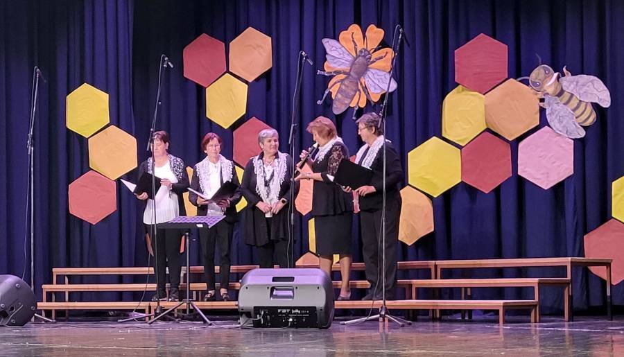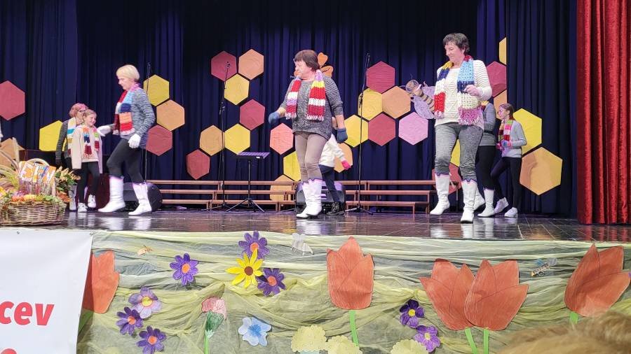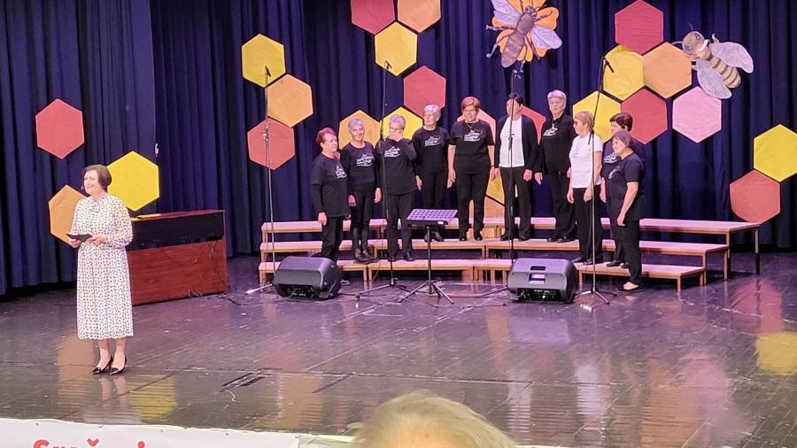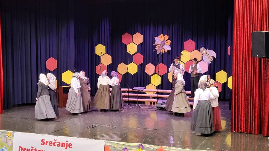 Dogodek smo nekoliko medgeneracijsko obarvali, saj se zavedamo, da je višja kakovost življenja v starostni raznolikosti. Pri tem so nam pomagale mlade folklornice iz OŠ Senovo. Dodatna sladka popestritev dogodka: Senovo je pred dnevi praznovalo 90-letnico Čebelarskega društva Senovo – Brestanica, zato smo prosili člane, da so pripravili predstavitev pred šolo tudi za vse udeležence, ki jih je to zanimalo, in tudi kulturni program na odru smo z rahlo zamudo začeli s Slakovim Čebelarjem, ki sta ga odpeli Ajda in Ema Imperl. Cela dvorana jima je pritegnila in vzdušje je bilo takoj veselo in sproščeno.