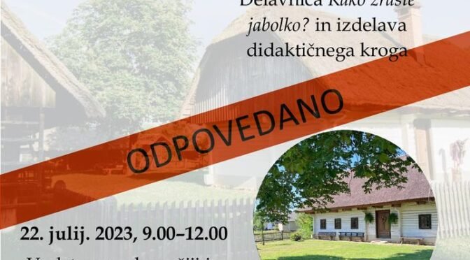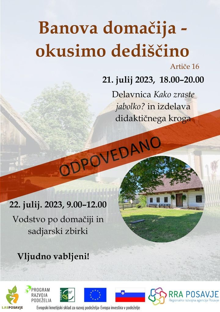 Današnja delavnica ter jutrišnje vodstvo po Banovi domačiji in sadjarski zbirki sta odpovedana zaradi slabega vremena.