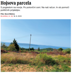 Sporni članek z naslovom “Hojsova parcela” je bil v tedniku Mladina objavljen dne 18. 9. 2020 pod rubriko korupcija. V podnaslovu članka Boruta Mekine je bilo navedeno, da je Aleš Hojs prišel do parcele po polovični ceni, na naš račun in ob pomoči političnih prijateljev. V članku se je vztrajalo, da je Hojs s pomočjo političnih prijateljev in z oškodovanjem javnega dobra “pridobil vsaj 189.000 EUR premoženjske koristi, parcelo kupil za 75.910 EUR oz. po 86 EUR/m2 in s tem leta 2019 skupaj z nagrado v obliki poceni parcele zaslužil več kot 30.000 EUR neto na mesec”. “S temi izjavami o neresničnih dejstvih je tožena stranka posegla v čast in dobro ime ter dostojanstvo tožnika,” je izhajalo iz sodbe.
