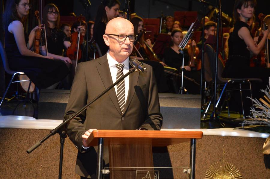 Skupaj lahko premagujemo ovire in ustvarjamo družbo, v kateri bo vsakdo imel priložnost za uspeh. Naj bo praznični čas napolnjen z mirom, srečo in ljubeznijo. Naj nas povezuje upanje na boljši jutri. In naj nas vodi prepričanje, da lahko z enotnostjo dosežemo še večje cilje,« je še med drugim dejal krški župan pred povsem zapolnjeno dvorano z obiskovalci in zaključil govor s slovenskim pregovorom, da »nihče ne ljubi domovine, ker je velika, temveč ker je njegova«.