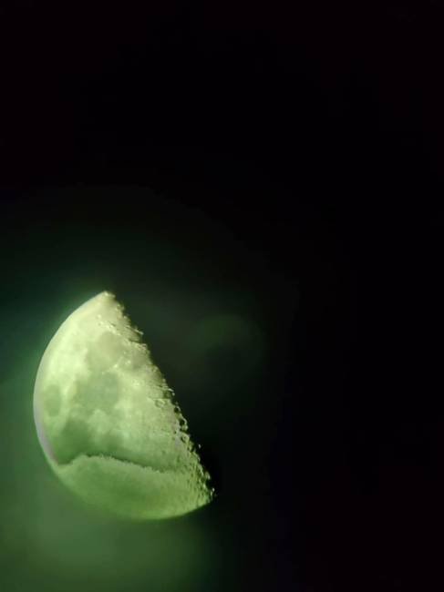 V začetku meseca smo se večernih urah zbrali pred šolo in se podali na nepozabno astronomsko raziskovanje. Učiteljica Mojca je za to posebno priložnost postavila teleskop, s katerim smo opazovali Luno in Venero. Zaradi tehničnih težav nam skozi teleskop ni uspelo natančneje pogledati Jupiter in Mars, smo ju pa opazovali s prostim očesom. Na koncu smo poiskali še Veliki in Mali voz s Severnico ter ozvezdji Kasiopeja in Orion. V njegovi bližini smo opazili tudi zvezdo Sirij, ki je najsvetlejša zvezda na vidnem nočnem nebu. Za vse ljubitelje astronomije smo skozi teleskop posneli luno, ki priča o naši nepozabni izkušnji.