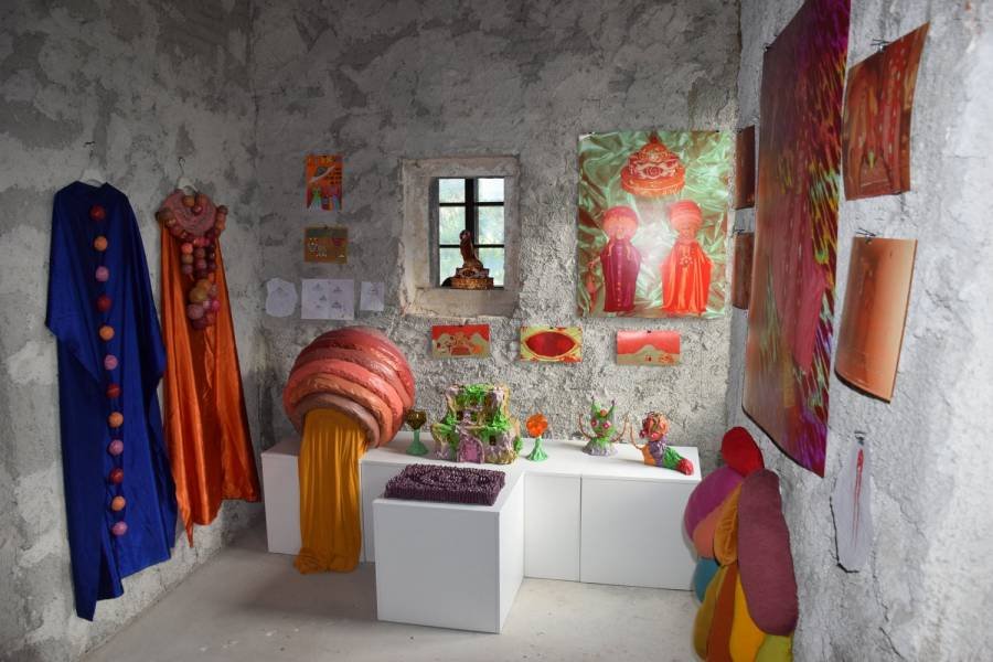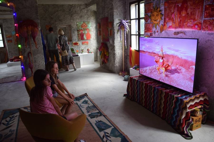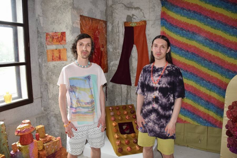 Festival se je v nedeljo pod večer nadaljeval z odprtjem vizualne umetnosti bratskega tandema Alena in Robija Predaniča »The Witch Twins«. Brežičana, letnika 1994, sta samouka vizualna umetnika, performerja, filmarja in ustvarjalca glasbenih videov za ustvarjalce in zasedbe iz celega sveta, kot so na primer Greg Hatem (ZDA), Sunfruits (Avstralija) in Runa de Luna (Norveška). Po lanski razstavi v Umetnostni galeriji Maribor je to njuna druga samostojna razstava in prva v domačem, posavskem okolju. Kot je povedal kustos v kostanjeviški galeriji Miha Colner, je v času festivala v ‘odprtem studiu’ galerije na ogled presek njunih vizualnih del v različnih formatih in medijih, ne le njuni filmi, ampak predvsem rekviziti in kostumi, ki jih izdelata za potrebe snemanja teh filmov. Njuno prakso zaznamuje razkošna barvita ‘retro’ estetika nenavadnih pravljičnih kostumov, vživljanje v privzete performerske vloge ter groba arhaična tekstura VHS formata. Pod lastnim alter egom The Witch Twins gradita namišljene, pravljične in utopične svetove na način ustvarjanja skoraj baročnih kostumov in mizanscen.