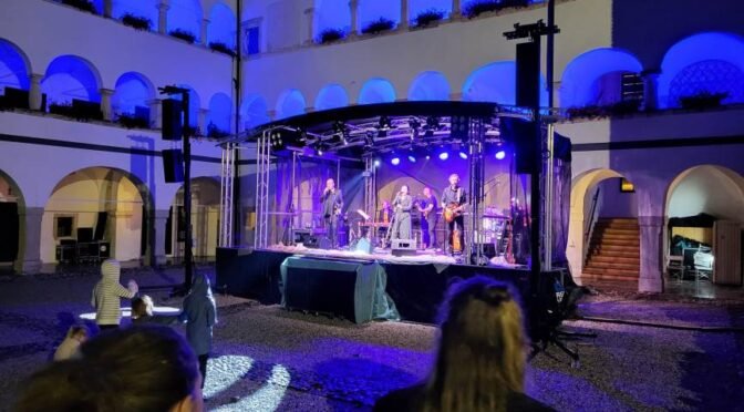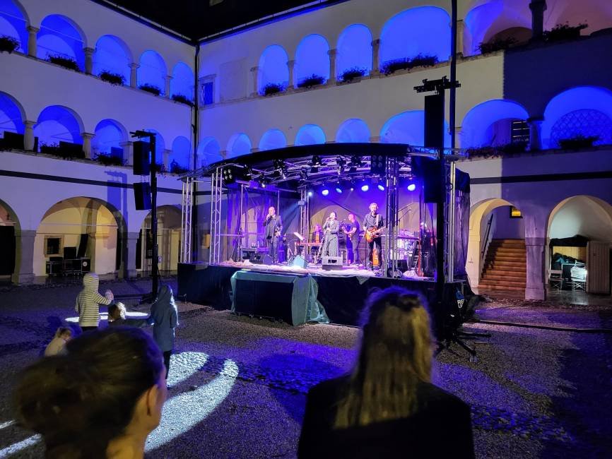 Kljub ne najbolj ugodnemu vremenu se je v soboto zvečer na dvorišču nekdanjega kostanjeviškega samostana, v katerem deluje Galerija Božidar Jakac, zbralo zavidljivo število obiskovalcev, ki so preživeli lep večer z glasbenimi gosti, skupino Katalena. Zasedba, ki jo sestavljajo Vesna Zornik, Polona Janežič, Boštjan Gombač, Tibor Mihelič Syed, Boštjan Narat in Robert Rebolj, je nastopila v tako rekoč vsakem klubu, koncertni dvorani ali festivalskem odru v državi, pa tudi v tujini, denimo v ZDA, Izraelu ter po večjem delu Evrope.