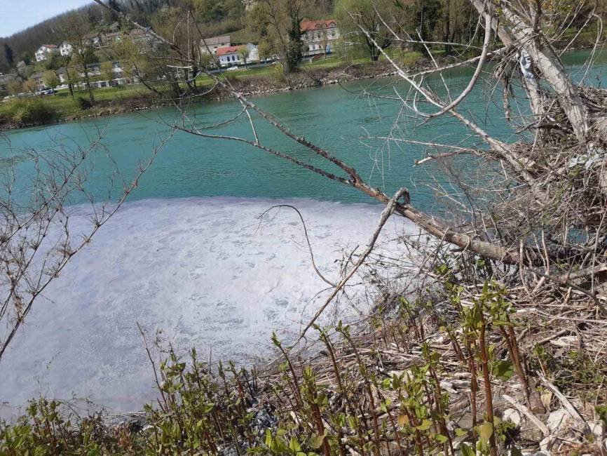 ‘Zaskrbljeni občan’, kot se je predstavil, nas je opozoril (in poslal tudi nekaj fotografij) današnjega zelo umazanega izliva v reko Savo pod čistilno napravo na območju tovarne Vipap.