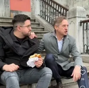 Golob se je fotografiral z burekom na stopnicah frančiškanske cerkve v Ljubljani (Foto: družbena omrežja)