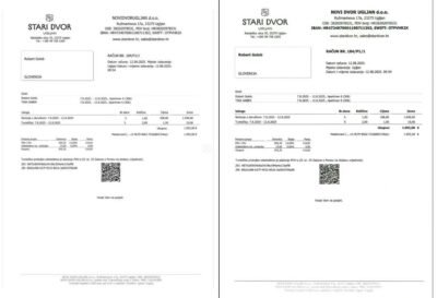 Spletni uporabnik je našel celo vrsto razlik med dokumentoma. Poleg že omenjene je na desnem računu bolj standardizirana tipografija z enakomernimi razmaki med vrsticami, na levem dokumentu pa so bolj stisnjene, denimo pri zapisu IBAN in SWIFT ter pri poravnavi naslova spletne strani www.stari-dvor.si. Pri polju “mjesto izdavanja” je pri besedi Uglajn dodatna vejica.