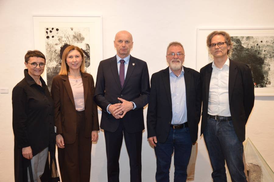 Ob odprtju razstave (z desne proti levi): Goran Milovanović, Janko Orač, Janez Kerin, Darja Planinc in dr. Helena Rožman