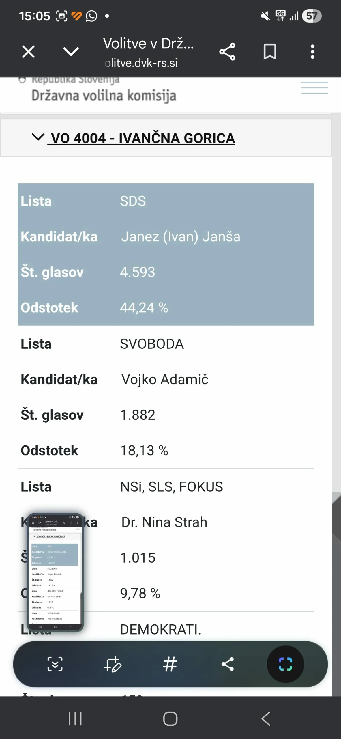 Predsednik SDS Janez Janša je na volitvah prejel 44,24 odstotka glasov. Njegova priljubljenost je torej večja od priljubljenosti kateregakoli predstavnika odhajajoče vlade/ministra Roberta Goloba.