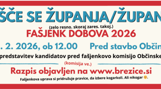 - Uradna predstavitev kandidatov: petek, 13. 2. 2026, ob 12.00 pred stavbo Občina Brežice
