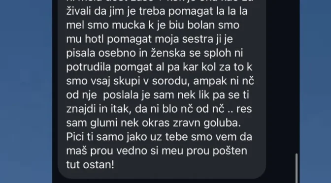 “Sram me je, da sem v sorodu z njo,” piše domnevna sestrična in dodaja, da Tina služi samo “okrasu zraven Goloba“. Iz sporočila se zdi, da niti lastni družini ni pripravljena pomagati, čeprav se javno postavlja kot sočutna in odgovorna oseba.