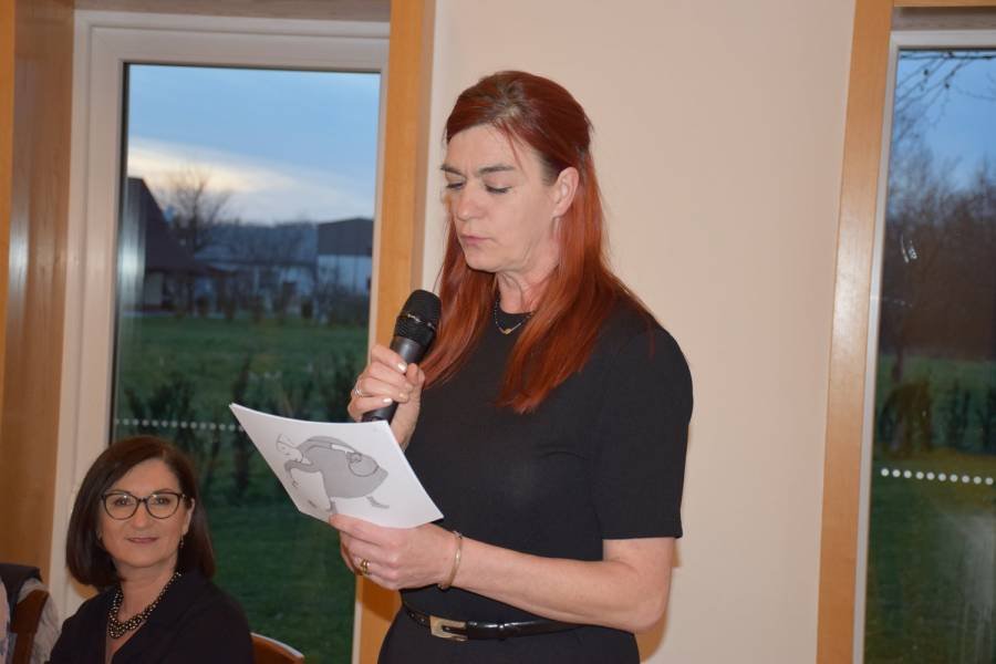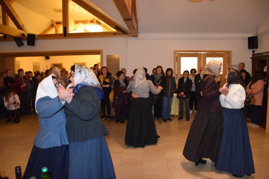 Mestoma humoren, mestoma pa tudi malce grenak pogovorni večer, ki sta ga s pesmijo popestrili Manca in Ana Baznik, se je sklenil s presenečenjem – nastopom folklorne skupine Društva upokojencev Brežice, nato pa še s pogostitvijo ob dobrotah, ki so jih napekle članice kulinarične skupine kostanjeviškega društva.