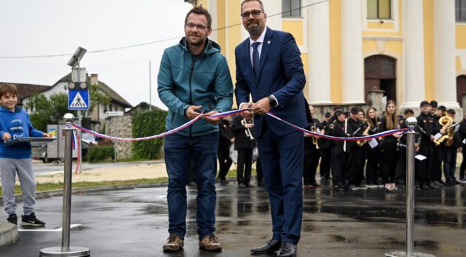 Podžupan Mestne občine Krško Dejan Žnideršič in predsednik Sveta Krajevne skupnosti Raka Rok Bizjak sta s prerezom traku namenu predala novo parkirišče na Raki ter zaključen projekt izgradnje kanalizacije in čistilne naprave.