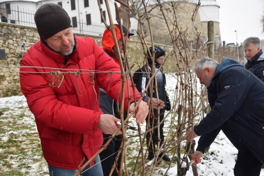 V današnjem nedeljskem dopoldnevu, na god sv. Vincenca, zavetnika vinogradov in vinogradnikov, so se zbrali botri in botrice vinske trte v grajskem vinogradu pod sevniškim gradom pri prvem letošnjem vinogradniškem opravilu – rezu vinske trte.