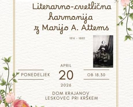 Vljudno vabljeni na literarni večer Literarno-cvetlična harmonija Marije A. Attems, ki bo 20. 4. 2026 ob 18.30, v Domu krajanov Leskovec pri Krškem.