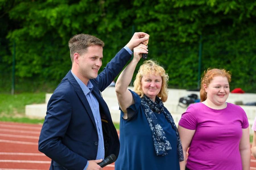 Podžupan Mestne občine Krško Janez Jože Olovec je ravnateljici Osnovne šole Adama Bohoriča Brestanica Martini Ivačič predal ključe novega kombija za prevoze učencev v šolo in domov.