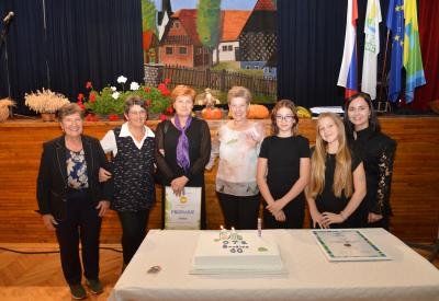 Na prireditvi prisotni predstavniki turističnih društev, vasi in šol s predsednico OTZ Brežice ter podeljevalcema