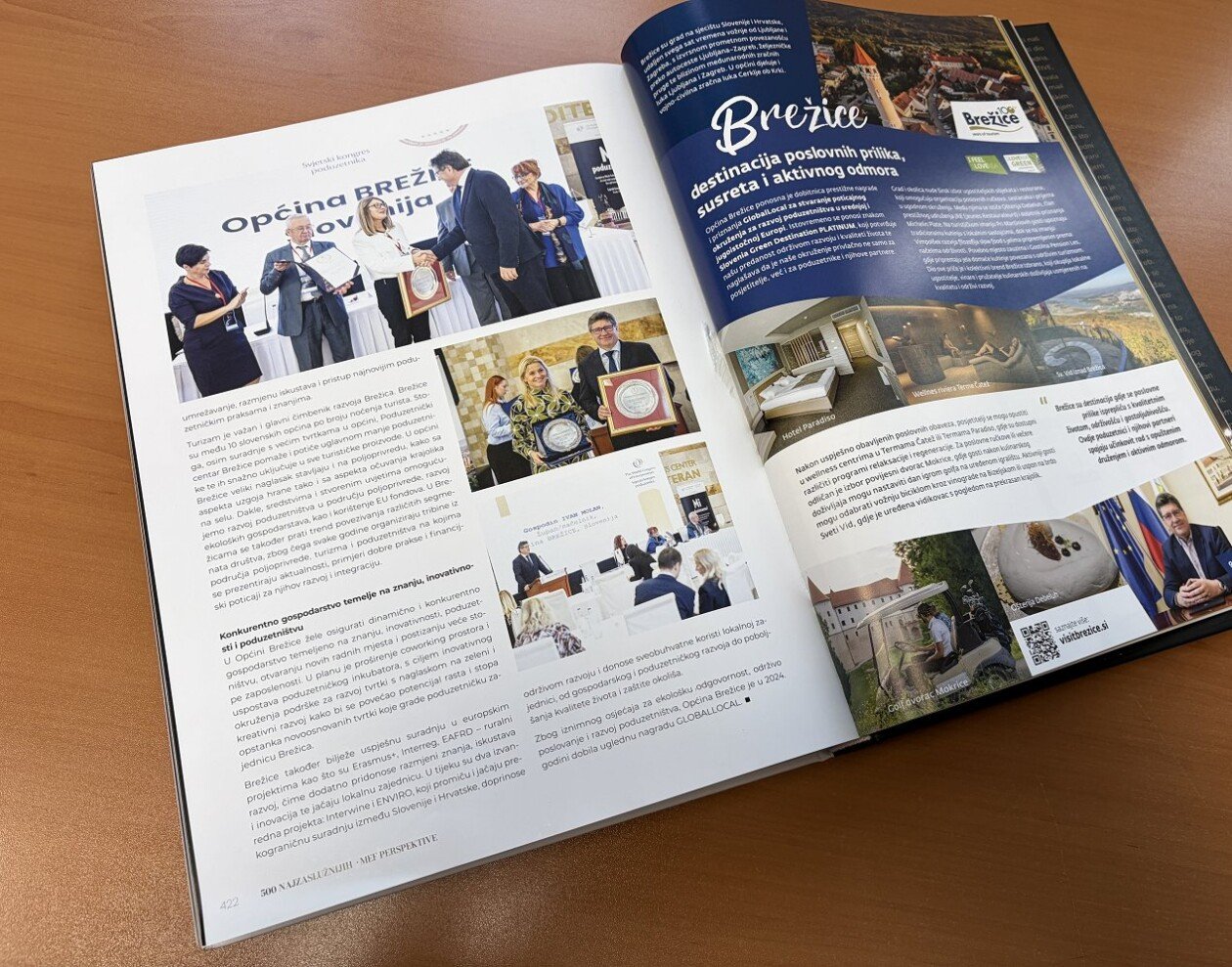 Občina Brežice je po prejemu velike nagrade GlobalLocal 2024 na Svetovnem kongresu podjetnikov vključena tudi v mednarodno monografijo Podjetništvo – 500 najzaslužnejših za razvoj trajnostnega podjetništva in nove ekonomije v srednji in jugovzhodni Evropi 2014-2024, ki je izšla konec leta 2025.