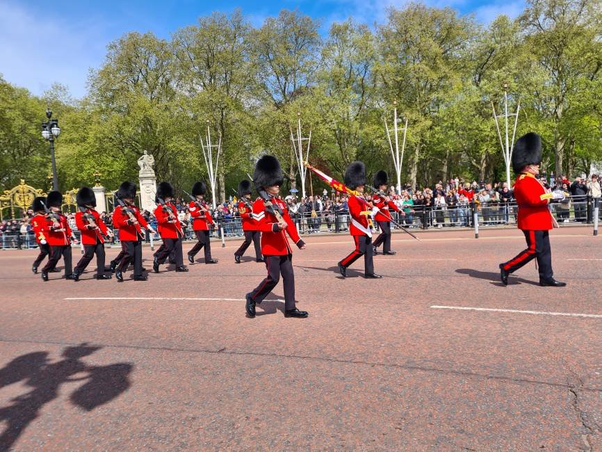 4. dan smo se zbudili bolj zgodaj, ker smo šli gledat menjavo straže pred Buckinghamsko palačo. Ta je trajala skoraj uro in pol, a je bila zelo veličastna. Najprej je prišla godba, za njimi pa stražarji. Po stare stražarje so prišli Tajvanci, nove pa so pripeljali Irci. Sprehajali smo se skozi st. James park in prišli do Nacionalne galerije portretov. V njej smo si ogledal portrete veliko znanih ljudi. Z avtobusom smo se odpeljali do Westminstrske opatije in šli k večerni maši. Potem smo šli še mimo parlamenta in Big Bena.