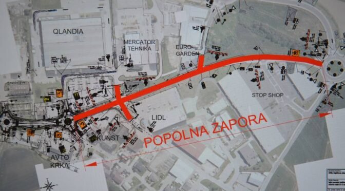 Pomeni, da bo popolna zapora prometa vzpostavljena od novega krožnega križišča Kunst – Qlandia / Trgomoto do krožnega križišča pri TC Krško (»STOP SHOP«), obvoz bo potekal po obvoznici Krško in lokalnih cestah, skladno s postavljeno prometno signalizacijo.
