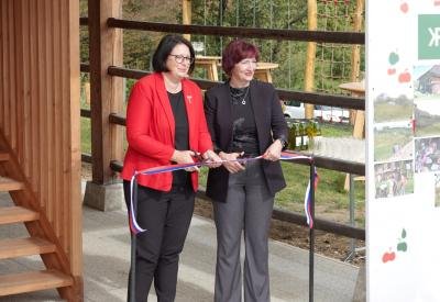 Interpretacijski center V sadovnjaku je svečano odprla Dubravka Kalin, generalna direktorica Direktorata za turizem na Ministrstvu za gospodarstvo, turizem in šport. Na odprtju je bilo okoli 90 obiskovalcev, med katerimi so bili tudi županja občine Kozje Milenca Krajnc, župan Bistrice ob Sotli Franjo Debelak in župan občine Podčetrtek Peter Misja. Dogodek so glasbeno obogatili učenci Mladinskega pevskega zbora Osnovne šole Lesično pod mentorstvom zborovodje Mateja Romiha. Zapeli so dve pesmi Lipa zelenela je in Kozjansko jabolko.