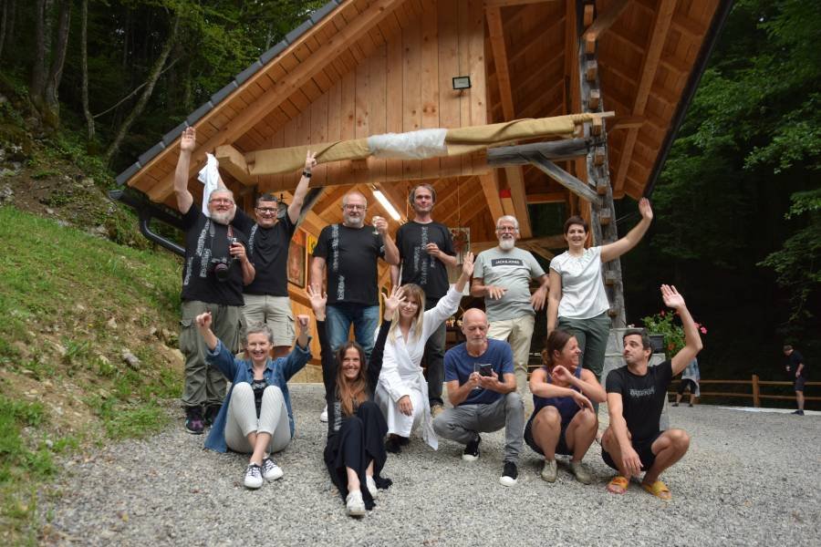 »Trinajst let je minilo, odkar smo prvič organizirali ArtEko Šentjanž, ki izvira iz svoje predhodnice, Portala Ana, ki ga je dolga leta organizirala družina Repovž iz Šentjanža. Na neki točki so želeli žezlo predati naprej in zanetiti nek nov ogenj. Takrat je sodelovanje s Turističnim društvom Šentjanž z veseljem sprejela Jerca Šantej, Turistično društvo Šentjanž pa je bilo počaščeno, ko je roko lahko podalo prav njej, saj vsi prav dobro vemo, da je s skupnimi močmi vse lažje. Arteko dogajanje se je nato selilo v Breško, tudi v Kamenško, nato pa je nekatere glavne akterje premamila idila Felicijanove domačije – tukaj, na naslovu Jablanica 13, v Peklu, in ta omama traja še dandanes,« je nanizala nekaj spominskih zaznav Tanja Mikolič ter besedo predala umetniški vodji Jerci Šantej, ki jo je napovedala z besedami, da je ArtEko ena izmed njenih najpomembnejših inštalacij, idej, umetnin. »Zanj živi 365 dni v letu, o njem razmišlja in ga skuša nadgrajevati. Kamorkoli potuje, ArtEko potuje z njo, ga ima v mislih,« je napovedala slikarko, ki ji idej nikoli ne zmanjka. Ta je povedala, da je želela, da bi bila letošnje dogajanje na likovni koloniji v Peklu, na obnovljeni domačiji Felicijan (več TUKAJ), v znamenju trinajstice, a je ostalo samo pri hišni številki in zaporedju likovnih delavnic, medtem ko umetnikov ni bilo 13, čeprav si je prizadevala, da bi jih letos toliko ustvarjalo v neokrnjeni naravi, v objemu dveh potokov in ob izviru stoletne vode.