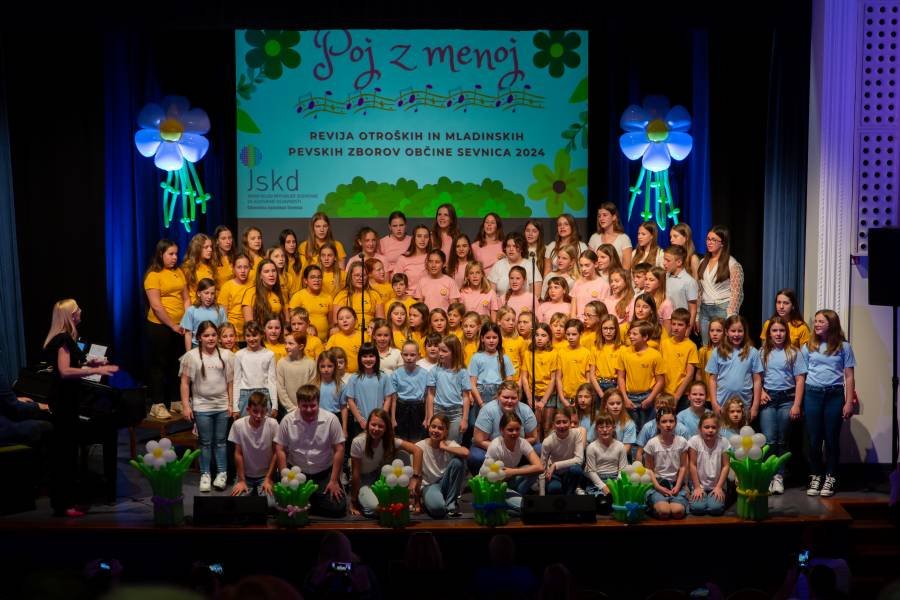 V minulem torkovem popoldnevu se je na reviji otroških in mladinskih pevskih zborov sevniške občine z naslovom »Poj z menoj« v organizaciji JSKD OI Sevnica predstavilo 12 otroških in mladinskih pevskih zborov. Zaradi števila nastopajočih je prireditev potekala v dveh delih, mladi pevci in pevke pa so navdušili.