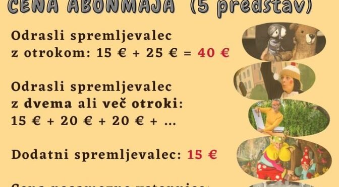 Vabimo vas, da se pridružite Gvidotovem gledališkemu abonmaju, ki je namenjen otrokom v spremstvu odraslih oseb. Pripravili smo niz 5 nepozabnih predstav, ki bodo vaše otroke popeljale v čarobne svetove, polne domišljije, smeha in pustolovščin 😉
