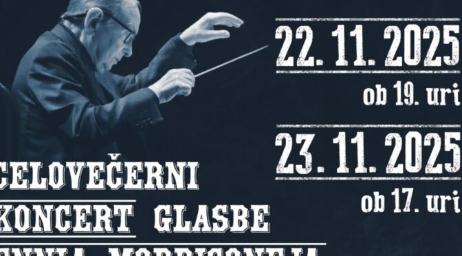 Ennio Morricone je s svojo glasbo ustvaril nepozabno filmsko krajino – od epskih vesternov do intimnih melodij filmskih klasik, ki so mu prinesle svetovno slavo in občudovanje. Posebni aranžmaji za pihalni orkester in zbore bodo občinstvu pričarali novo dimenzijo teh mojstrovin in pokazali, kako univerzalno in brezčasno je Morriconejevo glasbeno izročilo. Občinstvo bo lahko prisluhnilo legendarnim melodijam, kot so ganljiva Gabriel’s Oboe iz filma The Mission, epska uvertura The Ecstasy of Gold iz vestern klasike The Good, the Bad and the Ugly, čutna tema iz filma Once Upon a Time in the West ter številnim drugim nepozabnim delom, ki so Ennia Morriconeja zapisala med nesmrtne velikane filmske glasbe.
