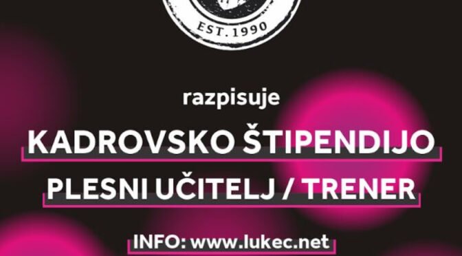 V Plesnem klubu Lukec se zavedamo trajnostnega razvoja in pomembnosti izobraženosti strokovnega kadra, ki poučuje in bo nekoč poučeval in vodil programe kluba. V ta namen razpisujemo kadrovsko štipendijo za bodočega plesnega učitelja ali trenerja, s katerim želimo dolgoročno zagotoviti strokovni kader za delo na področju plesa predvsem v našem lokalnem okolju.