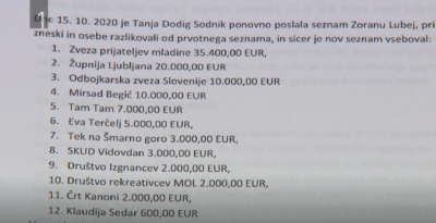 Kako je delovala Jankovićeva korupcijska hobotnica, pa razkriva seznam, ki ga je Lubej dostavil Popoviću. Na tem seznamu je bilo več organizacij in posameznikov in višina denarja, ki jim ga je Popović moral nakazati – več kot očitno kot ceno za županovo posredovanje. Seznam je skupaj nanesel 100 tisoč evrov podkupnin.