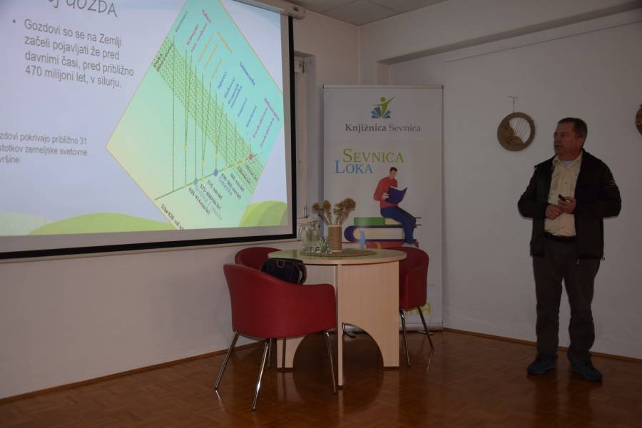V Knjižnici Sevnica je inženir gozdarstva Jože Prah predstavil pomen gozda in inovacij ter gozdnih učnih in tematskih poti, ki v letošnjem letu obeležujejo 50-letnico.