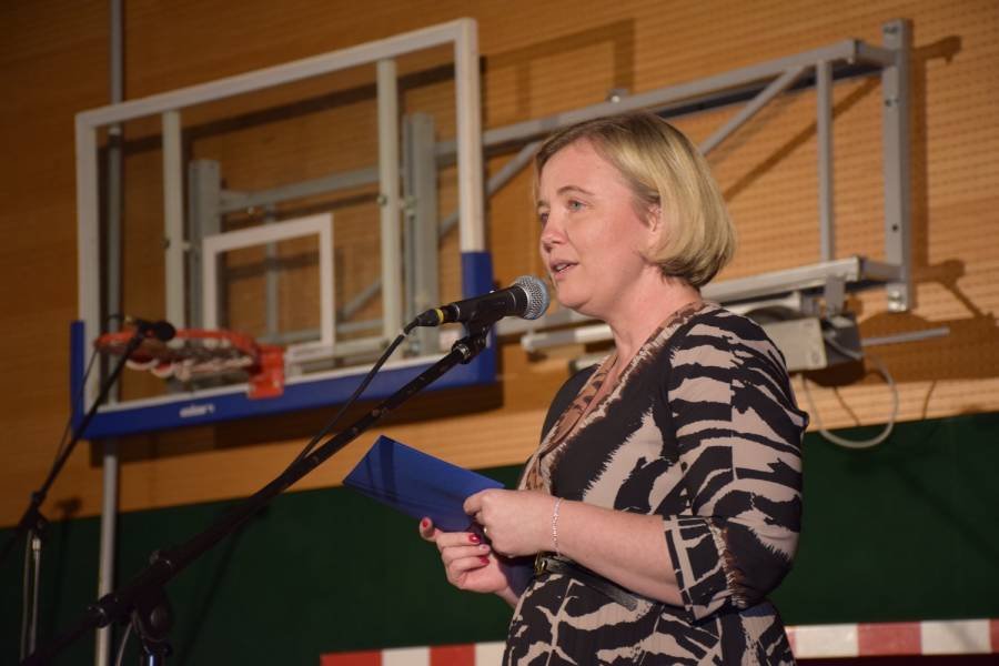 »Zbrali smo se v tako lepem številu z namenom pomagati našim otrokom doživeti še več tistih neprecenljivih trenutkov v šolskih klopeh, ki bogatijo otroštvo in mladost. Kajti verjamemo, dragi gostje, da bomo z vašo pomočjo in prispevki v šolski sklad zmogli za naše učence premikati meje lepega,« je občinstvo, ki je povsem napolnilo šolsko telovadnico, nagovorila povezovalka prireditve Sabina Božič. »V tako posebnem vzdušju, na tako posebnem mestu človek ne sme pogrešati glasbe. Kajti glasba je zavetje src. Je toplina, ki jo odrasli in otroci potrebujemo, da zmoremo ponosno stopati v svet,« je še dejala, nato pa oder prepustila nastopajočim.