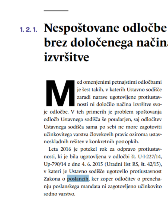 Vir zapletov je, ker je času vlade Mira Cerarja, ta je na oblast je prišli tako, da so med volilno kampanjo zaprli favorita volitev Janeza Janšo, leva večina poslanski mandat Janši pozneje odvzela in to v položaju, ko so vedeli, da se nima možnosti nikamor pritožiti in je uspeh zaradi tega zagotovljen. Janšo so volivci za poslanca izvolili iz zapora, v katerem je končal po nepoštenem sojenju na montiranem političnem procesu, vse sodbe je ustavno sodišče pozneje soglasno razveljavilo. Za razveljavitev so se odločili, ker je v sodbah manjkalo, kaj je sploh kršitev zakona, ki naj bi bila zagrešena in tudi zaradi nepoštenega sojenja, ker se v postopkih ni izločil takratni šef vrhovnega sodišča Branko Masleša. Zakon je takrat (in danes) omogočal odvzem mandata le, če je poslanec obsojen med mandatom, ne pa, če je za poslanca izvoljen iz zapora. Ustavno sodišče je tudi to goljufijo, ko so mandat Janši odvzeli, čeprav ne bi smeli, večine poslancev ugotovilo in samo prevzelo vlogo sodišča, ki zagotavlja pravno varstvo pred zlorabo oblasti. Janši so vrnili poslanski sedež in zahtevali popravek pravne ureditve, ki bi omogočal pritožbo. A večina zakona doslej še ni popravila. S tem, ko ne storijo, kar zahteva ustavno sodišče, še dodatno kršijo ustavno ureditev.