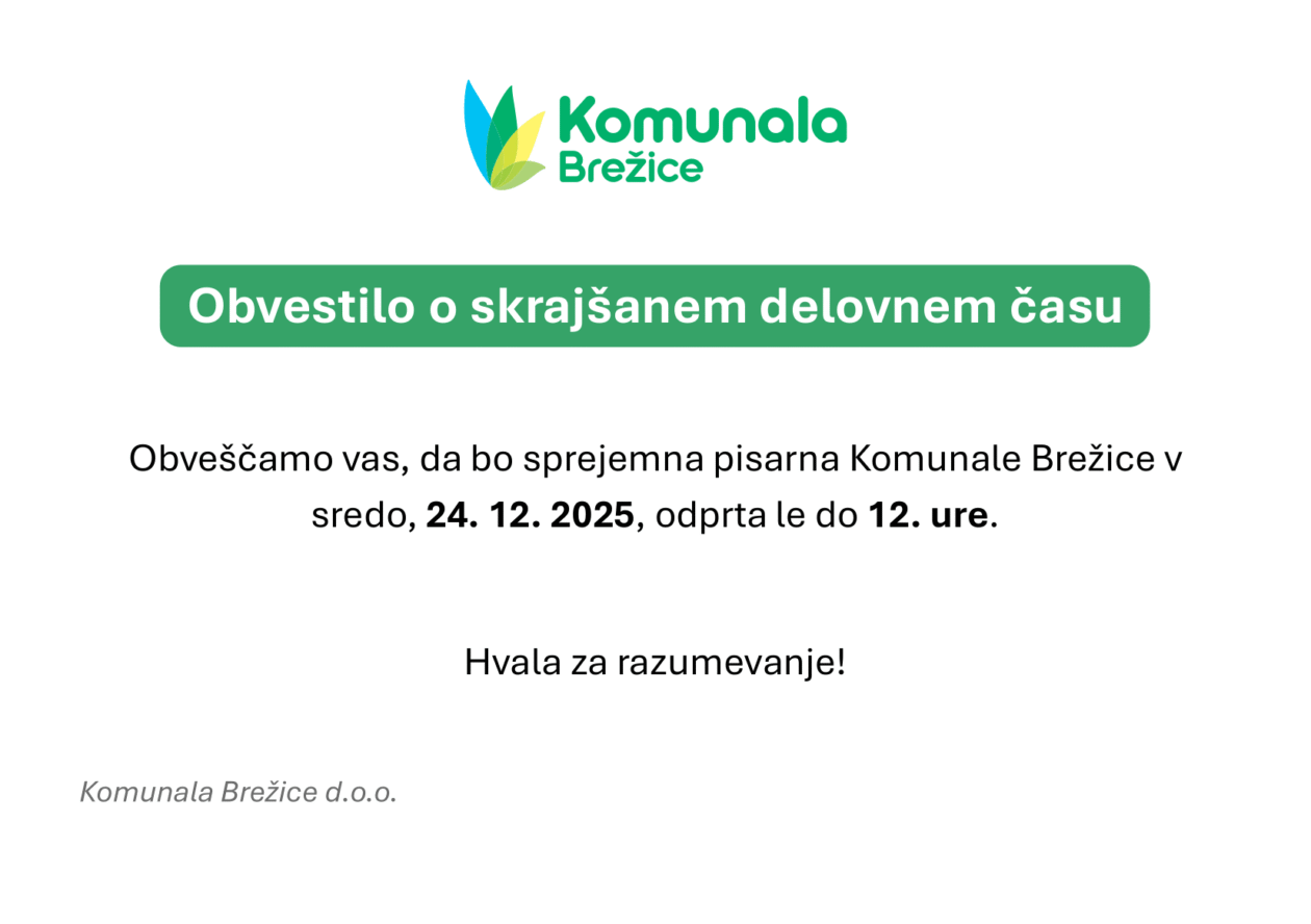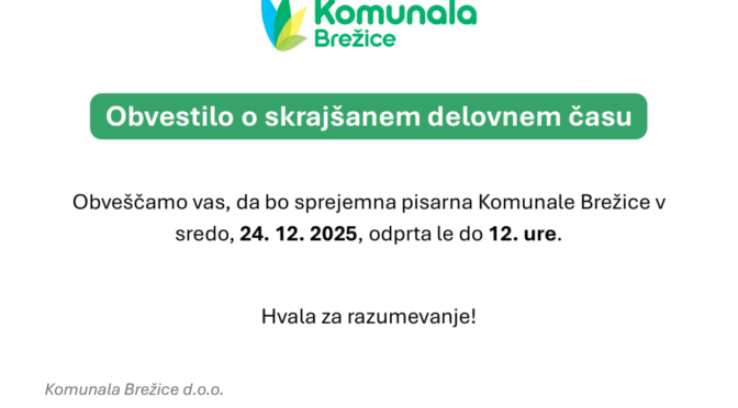 Radio Brežice Eu delimo članek z naslovom Praznični delovni čas z dne, 2025-12-15 14:48:49, avtorja Komunala Brežice.