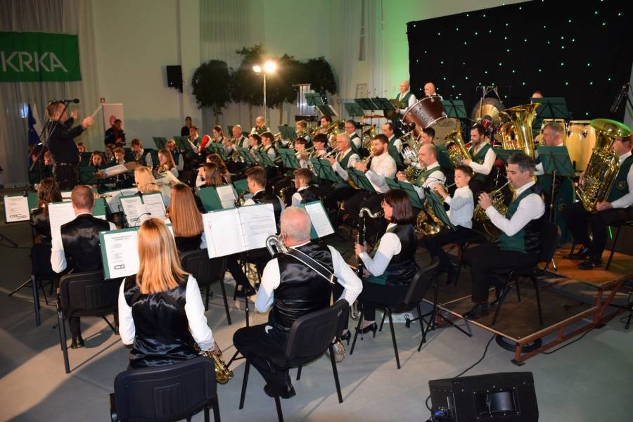 Pihalni orkester Kostanjevica na Krki, ki je letos vstopil v četrto desetletje delovanja, je v nadaljevanju pod taktirko Roka Šinkeca, ki je nadomestil obolelega dirigenta Tonija Homana, in ob veznem besedilu Eve Krajnc občinstvo v osmih skladbah popeljal na popotovanje v filmsko zgodovino preko camina, klarinetističnega ‘funka’, cingljanja na zvončke, poklona Whitney Houston, slovitega Ravelovega Bolera in Adamičevega Fičfiriča do Avsenikove Ene bolhe za pomoč, za dodatek pa so godbeniki zaigrali še praznično Sveto noč in poskočni Radetzky marš. Kot solistki sta se izkazali Ana Baznik na klarinetu in Zala Kržičnik na piccolu (flavti).