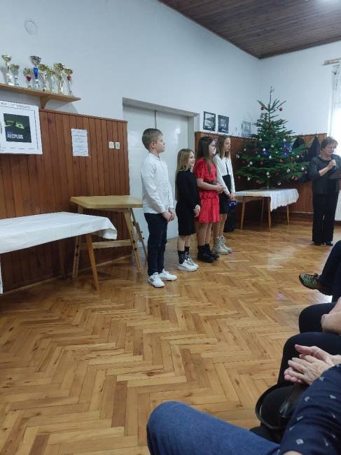Po nastopih smo neformalno prestavili stole, si postregli s prigrizki, ki so nam jih skuhale in pripravile naše članice v kuhinji, potem pa je ponovno zadonela pesem, domača, vesela, od starih ljudskih, do novejših, popularnih, … vmes pa veliko smeha, klepeta, toplih besed, stiskov rok…, toliko vsega kot lučk na novoletni jelki v kotu dvorane!