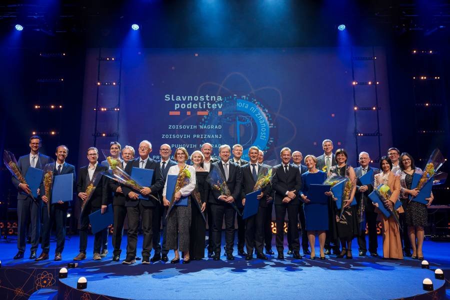 Letošnji prejemniki Zoisovih in Puhovih nagrad ter priznanj ambasador znanosti za izjemne dosezke v znanstvenoraziskovalni in razvojni dejavnosti (foto: Jure Makovec/STA)