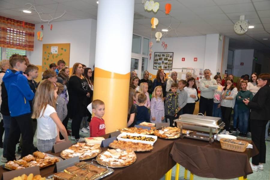 Ob 17. uri pa smo na zaključno prireditev projekta povabili vse naše starše, krajane, predstavnike društev, si pogledali, kaj vse smo počeli, pripravili krajši kulturni program, na koncu pa se posladkali z vsemi dobrotami, ki smo jih pripravili sami ali pa so nam jih pomagale speči tudi članice aktiva kmečih žena iz Pišec, naše babice in mamice. Tokrat je bila ponudba malo drugačna – puntarska, a nam je bila zelo všeč.